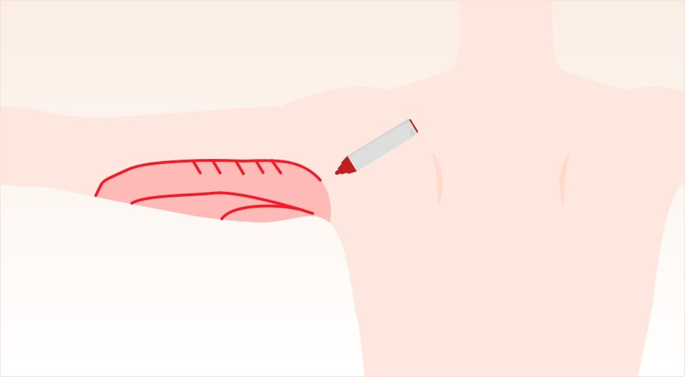 傷跡は、腕の付け根や肘のシワといった目立ちにくい部分を選定するため、傷跡が目立つことはほとんどありません。
